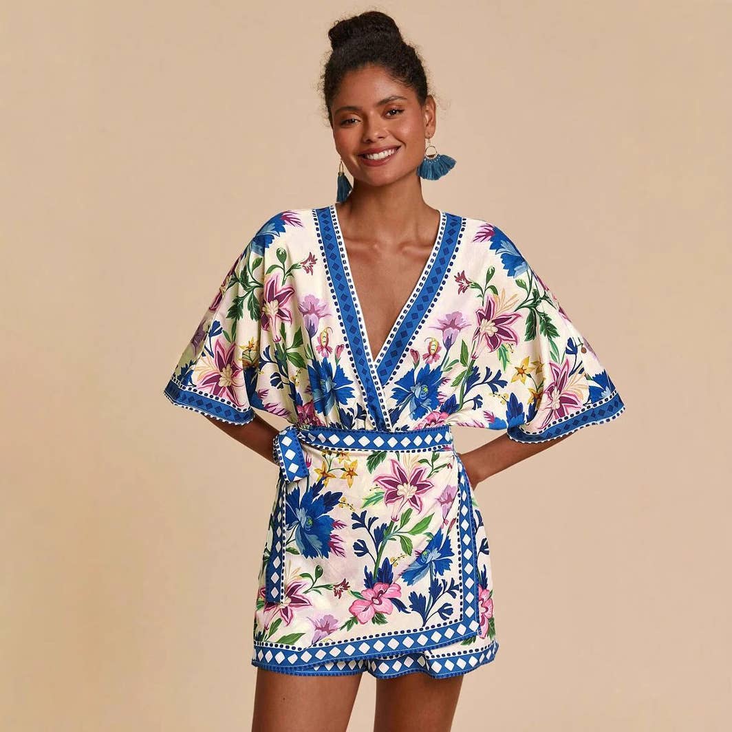 Bohemian Apricot Floral V-Neck Maxi Scarf Dress