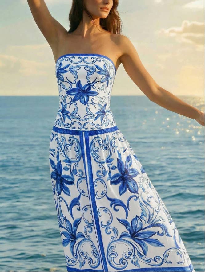 Bohemian Apricot Tropical Cutout Maxi Dress