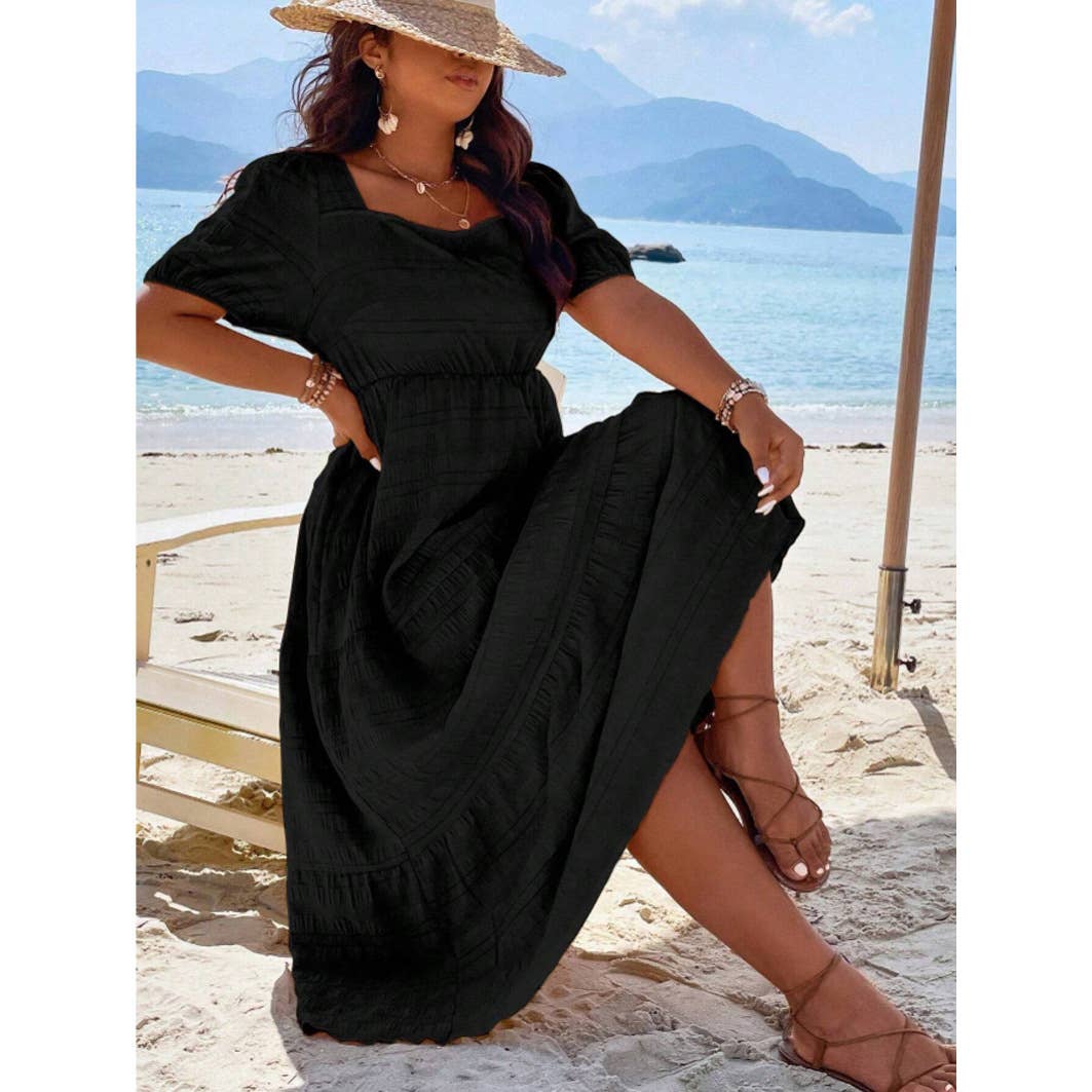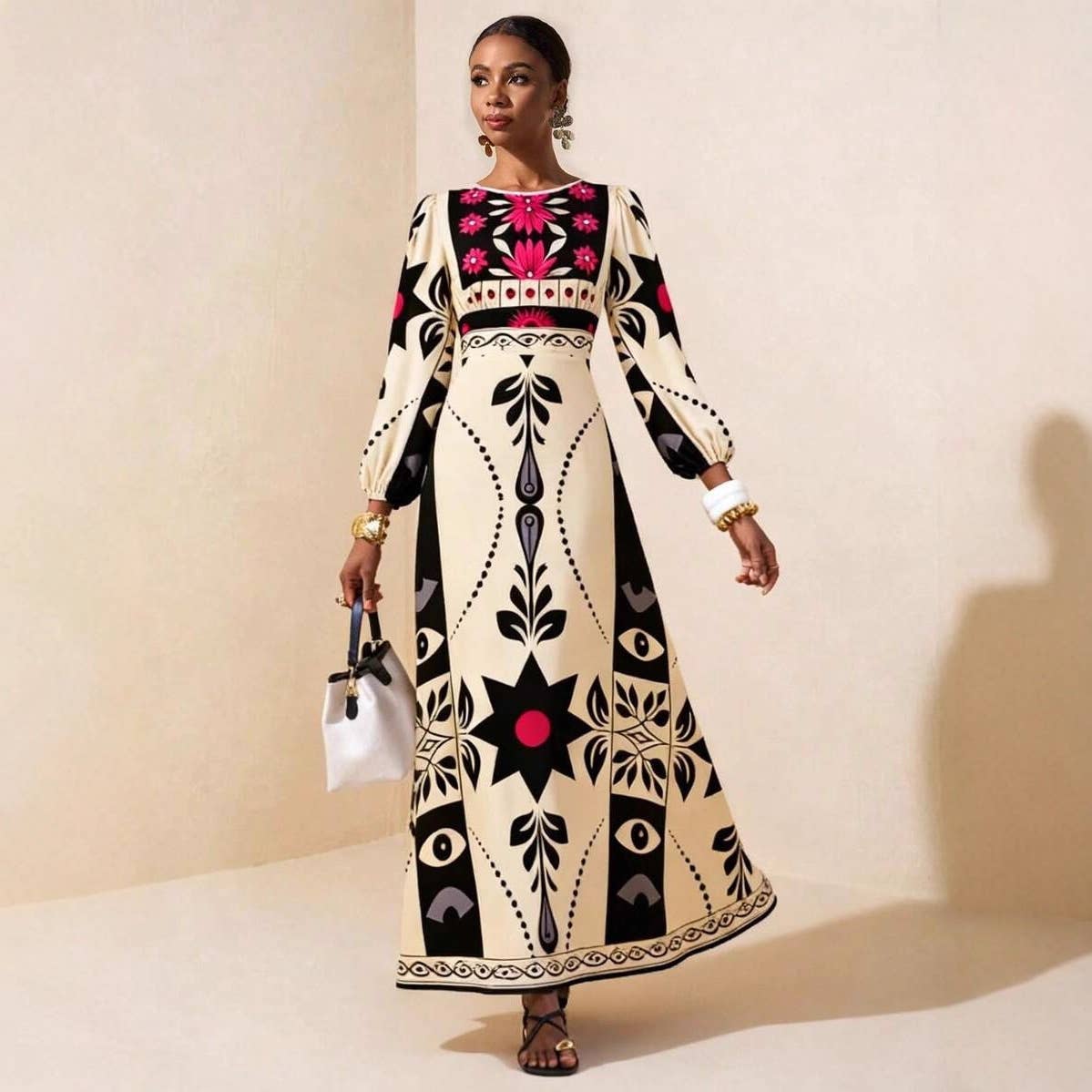 Bohemian Black Rose Lantern Sleeve Scarf Dress