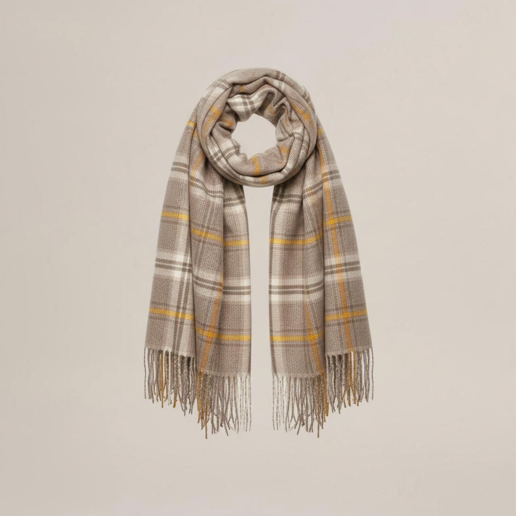 Embrace the chilly season with this artistic yellow striped winter scarf. Perfect for both men and women, this scarf offers a touch of elegance to any outfit.