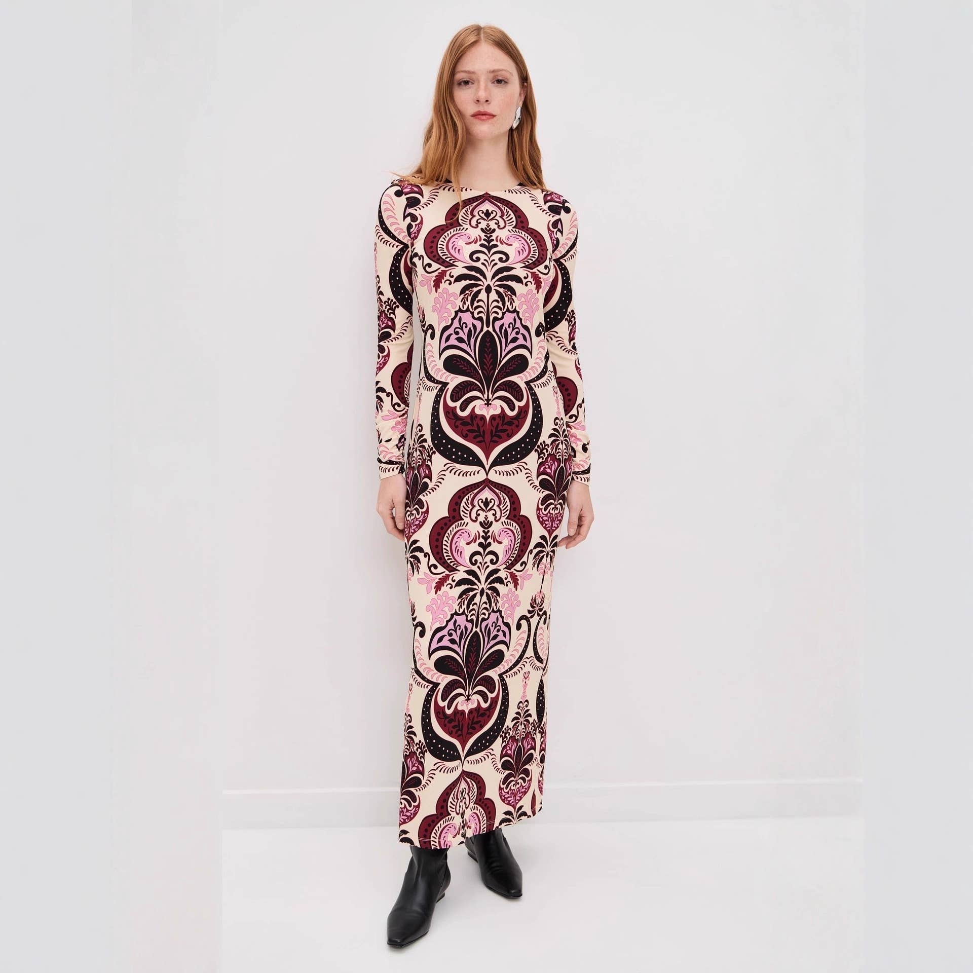 Embrace a bohemian lifestyle with this stunning apricot paisley dress, perfect for casual outings and travel adventures. The relaxed fit and round neckline offer comfort and style, while the intricate paisley print adds a touch of elegance.