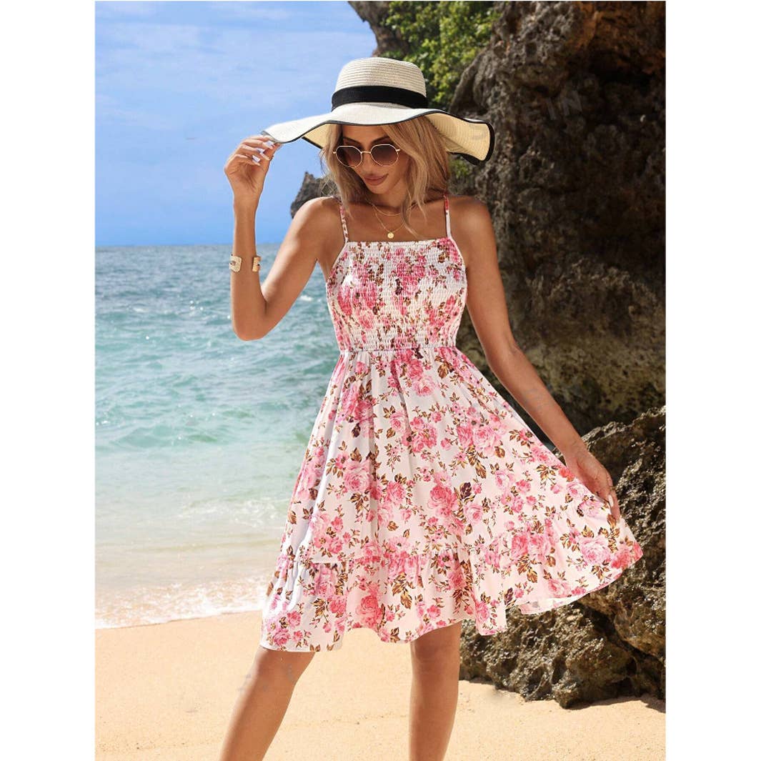 Embrace the essence of summer with this delightful Bohemian Pink Floral Strap Scarf Dress. Perfect for a sunny day out, this dress offers a relaxed fit and vibrant floral print that captures the spirit of the season.