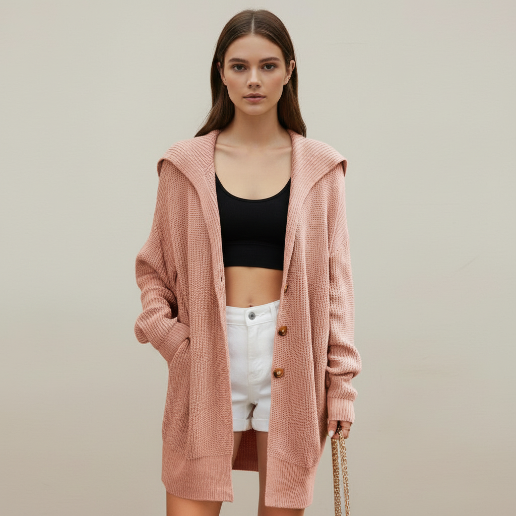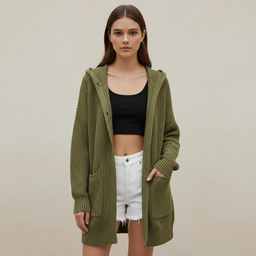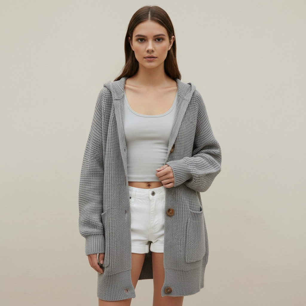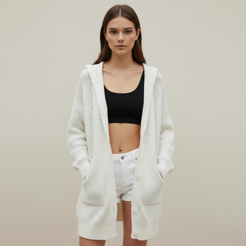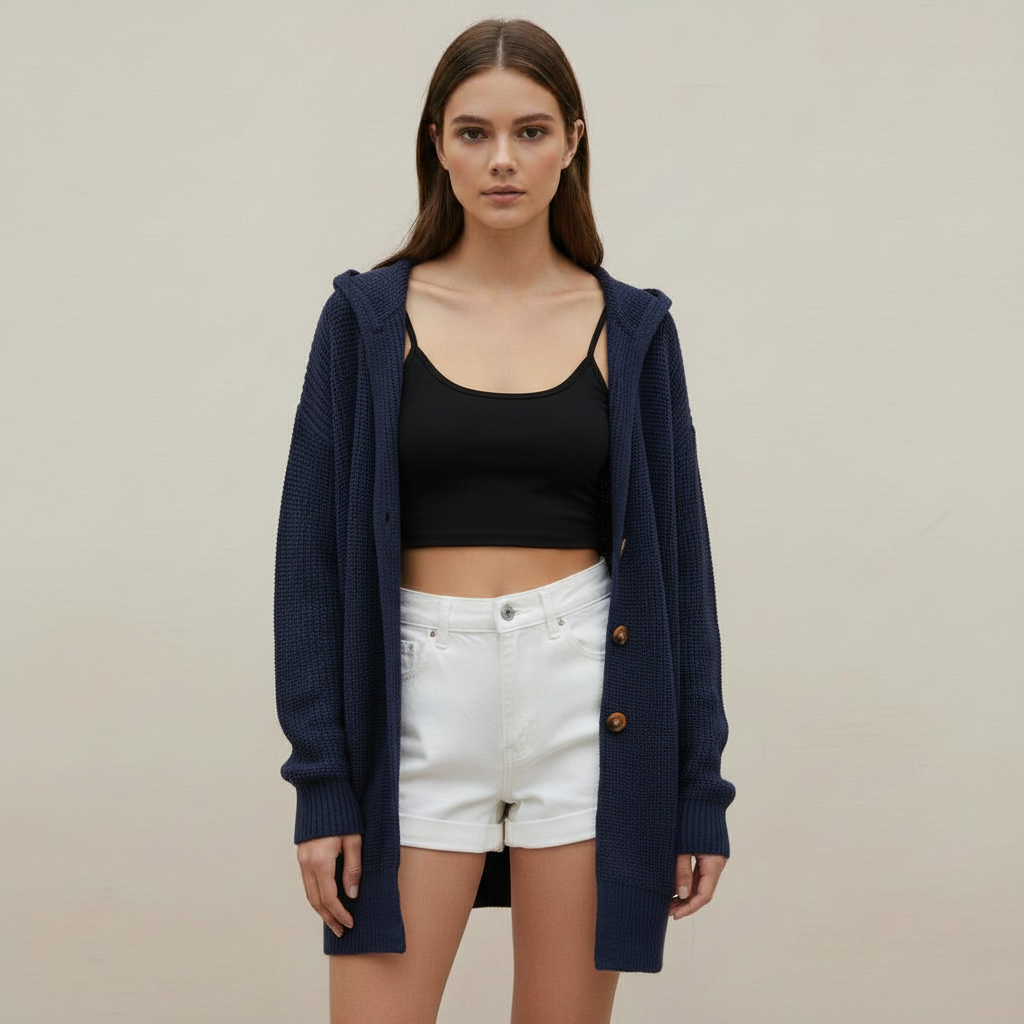 Step into the cooler months with this stylish mid-length cardigan, perfect for layering over your favorite outfits. Featuring a classic lapel design and three-button closure, this cardigan offers both comfort and elegance.