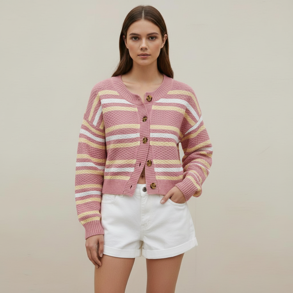 Elevate your wardrobe with this chic Colorblock Pink Buttoned Cardigan, perfect for the modern trendsetter. Crafted for versatility and style, this cardigan is ideal for layering during the cooler months.