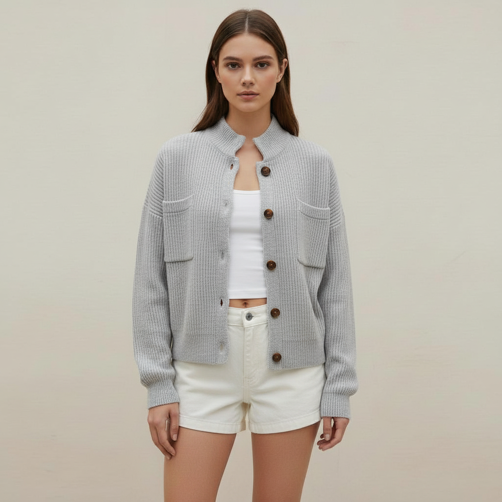 - Features a stand collar and single-breasted design for a chic look.