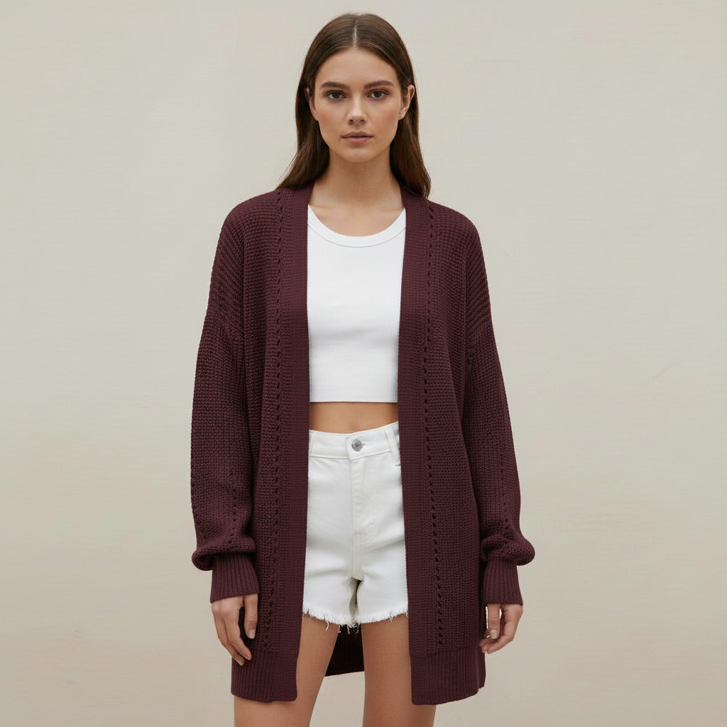 - Features: Open-front style, long sleeves, and a relaxed fit.